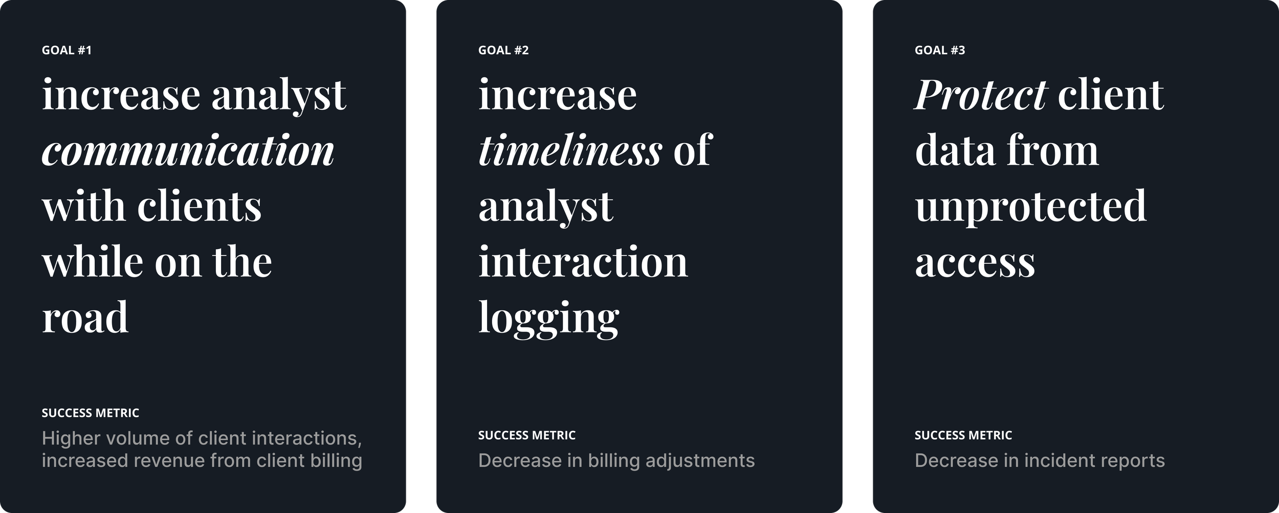 I then took these business goals and distilled them into what we’re trying to achieve for our analysts