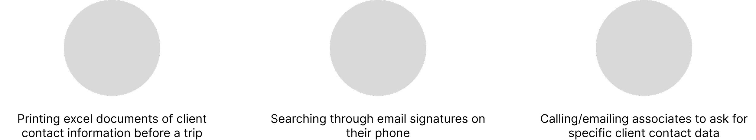 I then set off to conduct analyst interviews to understand their current method of retrieving client information and logging activities while on the road. The most common ways that analysts procured client contact information were:
